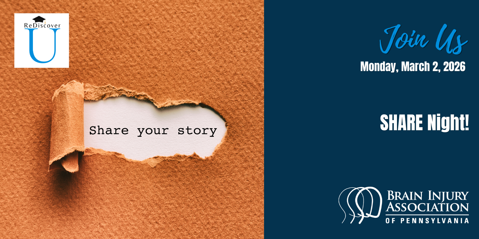 A special night of story-sharing. All brain injury survivors are encouraged to share their life experiences as they look to empower themselves while inspiring hope in others.